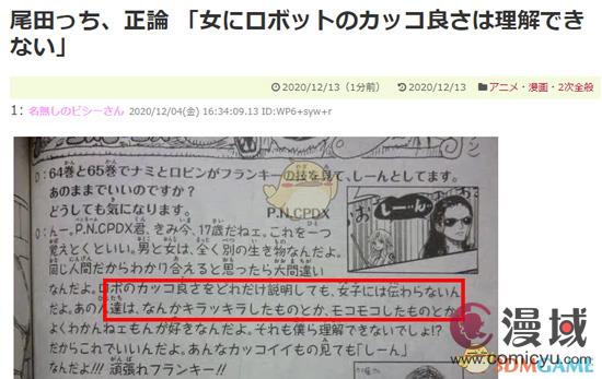 尾田回答时则表示,来信读者今年17岁吧,有件事请记住,男人和女人是完全不同的2种生物,女性对机器人的帅酷是无法理解的,她们只喜欢那些闪闪发亮的或者毛茸茸之类的东西。