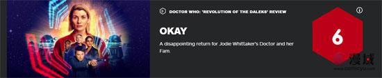 目前,IGN官方公开了电影《神秘博士元旦特集:戴立克革命》的评测和评分细节,此次IGN打出了6分,认为该作令人失望。
