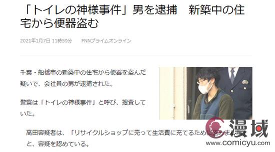 据警方透露,2020年10月起,千叶县·船桥市多处新建住宅的马桶失窃,已经发现18个之多,警方直接将之称为《厕所的神明事件》,当然,“神明”的本尊只是一个窃贼而已。