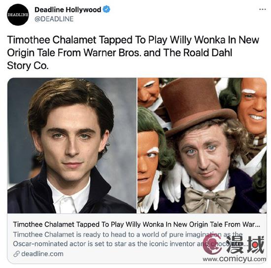 据国外媒体报道,“甜茶”蒂莫西·柴勒梅德将主演《查理和巧克力工厂》前传影片《旺卡》,饰演威利·旺卡一角,在《查理和巧克力工厂》中这一角色由约翰尼·德普饰演。
