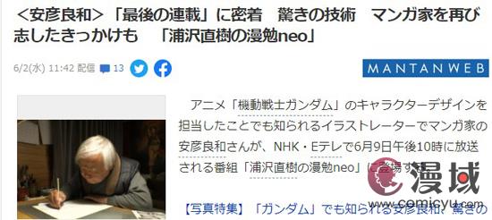 透露这个消息的是来自电视节目《浦泽直树的漫勉NEO》,另一位著名漫画家浦泽直树将带领观众走进其他漫画家的心灵世界,而节目并没有透露安彦良和老师所谓的“最后的连载”是什么漫画,敬请期待后续报道。