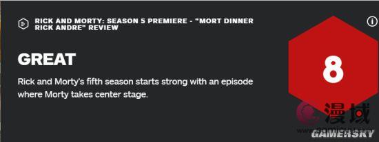 IGN为知名成人动画《瑞克与莫蒂》第五季第一集给出了8分的评价,称这一集是莫蒂占据中心舞台的强势开场。