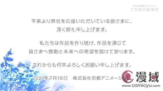 在视频的最后,京都动画表达了对观众们的感激,同时也承诺:“我们会继续创作,创作出为大家带来感动以及对未来希冀的作品。感谢你们的支持!”