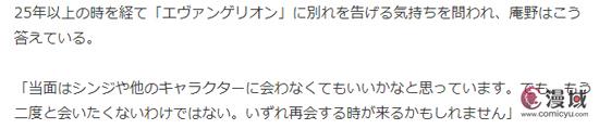 庵野秀明在被问到与25年EVA告别时的心情时,庵野秀明则表示虽然当下阶段已经完结,不过并不是说不想再见到真治等人,或许再会的机会就会到来。