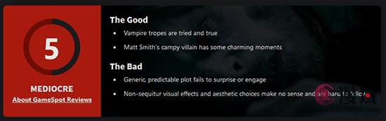目前电影的烂番茄新鲜度仅为 19%,IMDb 评分 5/10,IGN 评分为 5/10,Gamespot 的评分同为 5/10。