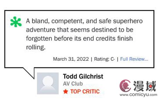 Rotten Tomato 的评论家 Todd Clichrist 表示,《莫比亚斯》是一个“平淡无奇、做到了该做的工作,并且非常安全的超级英雄冒险”,“似乎注定在其片尾职员表结束之前就会被遗忘”。