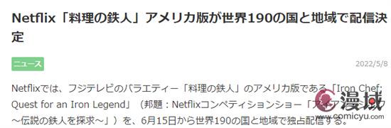 Netflix日前宣布根据日版改编,深受世界观众喜爱的经典真人秀《铁厨》美版6月15日上线发布,发布区域多达190个国家地区,敬请期待。
