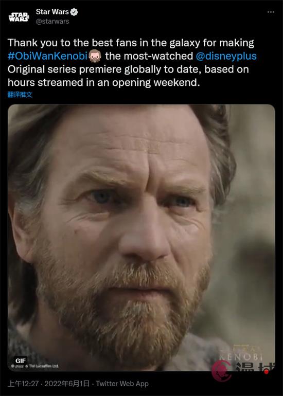 根据《星球大战》官方推特账号,迪士尼Plus最新剧集《欧比旺·克诺比》首映打破了纪录。它是迄今为止观看人数最多的迪士尼Plus原创剧集首映,该统计来自于首映周末的播放观看时长。