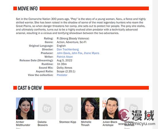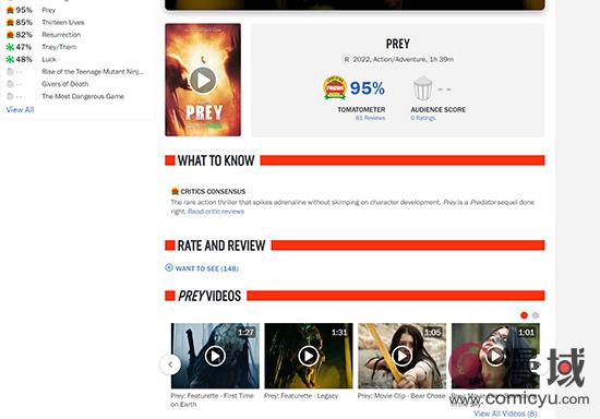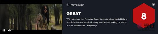 《铁血战士》前传电影《铁血战士:猎物》口碑解禁,影片获得IGN 8分好评,而在烂番茄上,新鲜度高达95%,已经获得了新鲜认证。