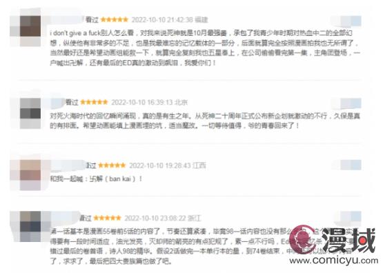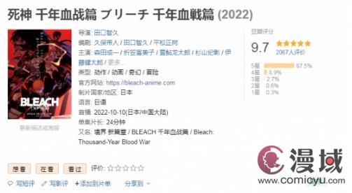 《死神:千年血战篇》已于10月10日正式开播。目前豆瓣已开分,评分为9.7分,有87.5%的用户给出了5星好评。好评观众认为该作设定展开、节奏、悬念、人物刻画及配乐都十分出色,画风也立体了不少。结尾EP的回忆杀情怀分直接拉满。