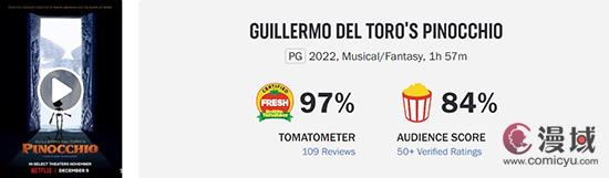 由“陀螺”吉尔莫·德尔·托罗担任导演之一的动画片 《匹诺曹》将于12月9日上线奈飞,近日该片烂番茄口碑曝光:新鲜度高达97%(109个评价),爆米花指数84%,MTC综合评分82分,IMDb评分8.1。